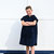 Réglable à la taille grâce à une ceinture cordon au look "marin" et ses rayures contrastées bleu marine et blanche.